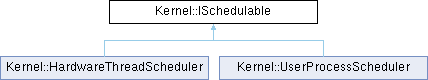 Reimplemented in Kernel::HardwareThreadScheduler, and Kernel::UserProcessScheduler.